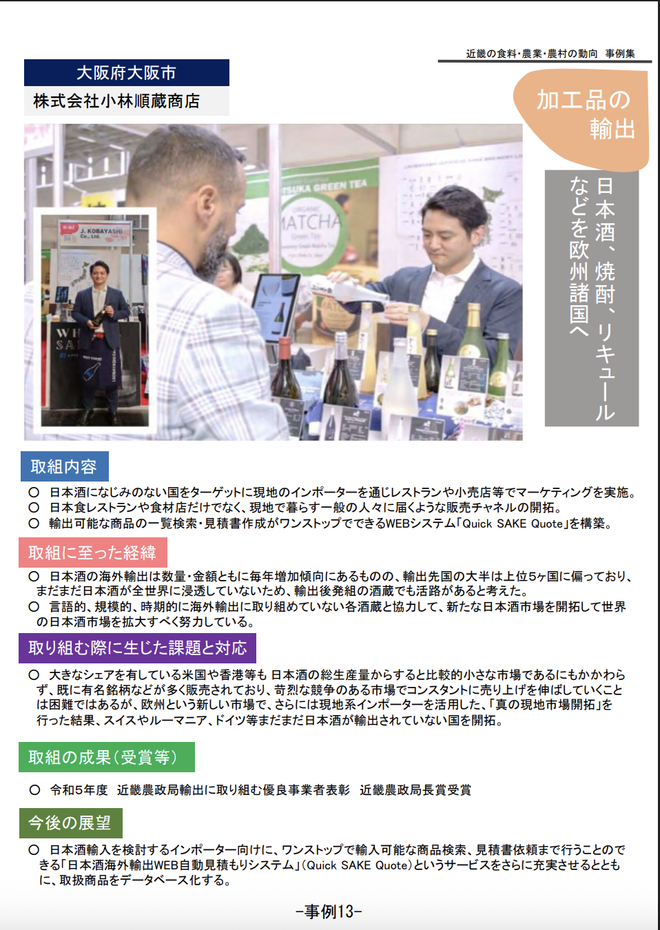 株式会社小林順蔵商店は令和3年および令和6年に、日本酒・焼酎・リキュールの欧州諸国への輸出の取組みにより、近畿農政局から表彰を受けました。 このたび、これまでの…